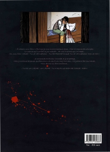 - A présent, non frère, il faut que je vous montre quelque chose... C'est la chemise de notre père. La chemise qu'il portait ce jour maudit... Et voici le plomb qui l'a frappé... Oh mon frère ! Orso ! Tu le vengeras ! Tu me promets que tu le vengeras ! Dis le moi ! - Je comprends ta douleur Colomba, et je la partage. Mais je continue de penser que Barricini, n'a rien à voir avec tout cela... La justice a fait son travail. Nous devons lui faire confiance... - Tu es un lâche ! Un lâche ! Tu n'a plus rien de corse ! Rien !