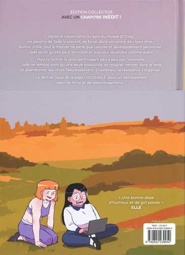 Edition collector avec un chapitre inédit ! Après la catastrophe du gala du musée d'Orsay, les parents de Jade la placent, de force, dans un centre de " bien-être ". Autour d'elle, tout le monde ne parle que calories et développement personnel... Jade se dit qu'elle peut tenir bon et que tout reviendra comme avant. Mais la faim et la solitude finissent peu à peu par l'atteindre. Jade ne semble avoir qu'une seule possibilité, se résigner, rentrer dans le rang et abandonner ses rêves. Heureusement, à l'extérieur, la résistance s'organise... Le dernier opus de la saga COLOSSALE, pour un dénouement plein de force et de rebondissements !