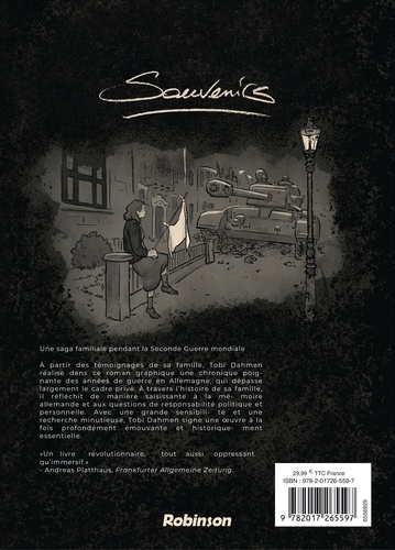 Une saga familiale pendant la Seconde Guerre mondiale A partir des témoignages de sa famille, Tobi Dahmen réalise dans ce roman graphique une chronique poignante des années de guerre en Allemagne, qui dépasse largement le cadre privé. A travers l'histoire de sa famille, il réfléchit de manière saisissante à la mémoire allemande et aux questions de responsabilité politique et personnelle. Avec une grande sensibilité et une recherche minutieuse, Tobi Dahmen signe une oeuvre à la fois profondément émouvante et historiquement essentielle. "Un livre révolutionnaire, tout aussi oppressant qu'immersif". - Andreas Platthaus, Frankfurter Allgemeine Zeitung.
