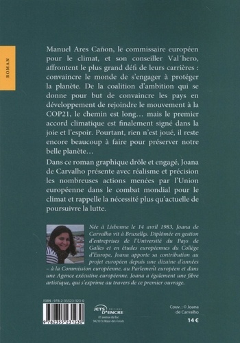 Manuel Ares Canon, le commissaire européen pour le climat, et son conseiller Val´hero, affrontent le plus grand défi de leurs carrières : convaincre le monde de s'engager à protéger la planète. De la coalition d'ambition qui se donne pour but de convaincre les pays en développement de rejoindre le mouvement à la COP21, le chemin est long... mais le premier accord climatique est finalement signé dans la joie et l'espoir. Pourtant, rien n'est joué, il reste encore beaucoup à faire pour préserver notre belle planète... Dans ce roman graphique drôle et engagé, Joana de Carvalho présente avec réalisme et précision les nombreuses actions menées par l'Union européenne dans le combat mondial pour le climat et rappelle la nécessité plus qu'actuelle de poursuivre la lutte.