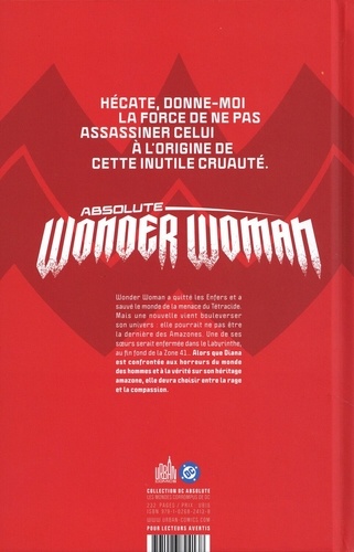 Wonder Woman a quitté les Enfers et a sauvé le monde de la menace du Tétracide. Mais une nouvelle vient bouleverser son univers : elle pourrait ne pas être la dernière des Amazones ! Une de ses soeurs serait enfermée dans le Labyrinthe, au fin fond de la Zone 41... Alors que Diana est confrontée aux horreurs du monde des hommes et à la vérité sur son héritage amazone, elle devra choisir entre la rage et la compassion.