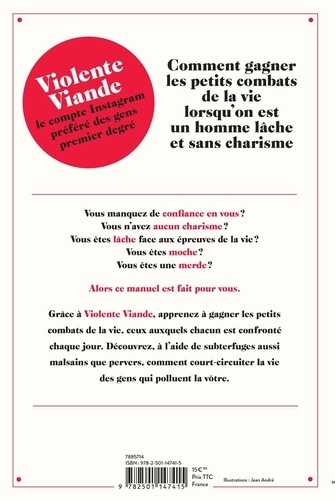 Vous manquez de confiance en vous ? Vous n'avez aucun charisme ? Vous êtes lâche face aux épreuves de la vie ? Vous êtes moche ? Vous êtes une merde ? Alors ce manuel est fait pour vous. Grâce à Violente Viande, apprenez à gagner les petits combats de la vie, ceux auxquels chacun est confronté chaque jour. Découvrez, à l'aide de subterfuges aussi malsains que pervers, comment court-circuiter la vie des gens qui polluent la vôtre.