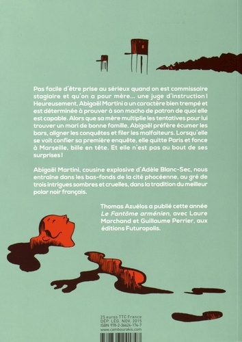 Pas facile d'être prise au sérieux quand on est commissaire stagiaire et qu'on a pour mère... une juge d'instruction ! Heureusement, Abigaël Martini a un caractère bien trempé et est déterminée à prouver à son macho de patron de quoi elle est capable. Alors que sa mère multiplie les tentatives pour lui trouver un mari de bonne famille, Abigaël préfère écumer les bars, aligner les conquêtes et filer les malfaiteurs. Lorsqu'elle se voit confier sa première enquête, elle quitte Paris et fonce à Marseille, bille en tête. Et elle n'est pas au bout de ses surprises ! Abigaël Martini, cousine explosive d'Adèle Blanc-Sec, nous entraîne dans les bas-fonds de la cité phocéenne, au gré de trois intrigues sombres et cruelles, dans la tradition du meilleur polar noir français.