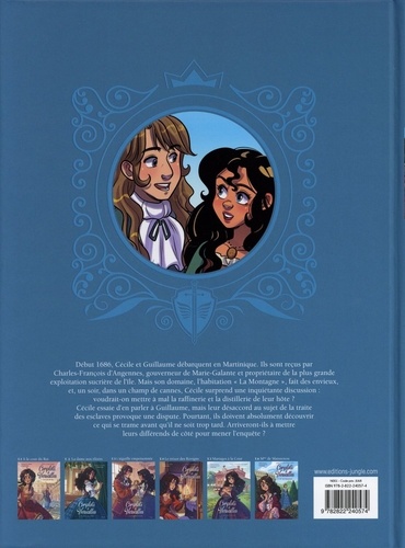 Un nouveau tome inédit de la série Complots à Versailles ! Début 1686, Cécile et Guillaume débarquent en Martinique. Ils sont reçus par Charles-François d'Angennes, gouverneur de Marie-Galante et propriétaire de la plus grande exploitation sucrière de l'île. Mais son domaine, l'habitation " La Montagne ", fait des envieux, et, un soir, dans un champ de cannes, Cécile surprend une inquiétante discussion : voudrait-on mettre à mal la raffinerie et la distillerie de leur hôte ? Cécile essaie d'en parler à Guillaume, mais leur désaccord au sujet de la traite des esclaves provoque une dispute. Pourtant, ils doivent absolument découvrir ce qui se trame avant qu'il ne soit trop tard. Arriveront-ils à mettre leurs différends de côté pour mener l'enquête ?