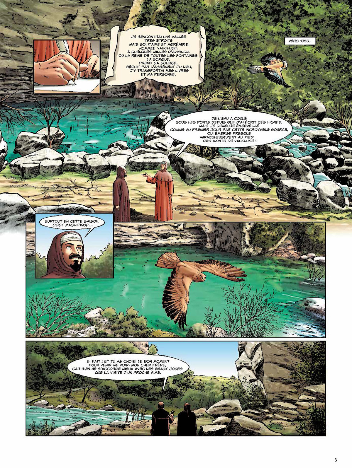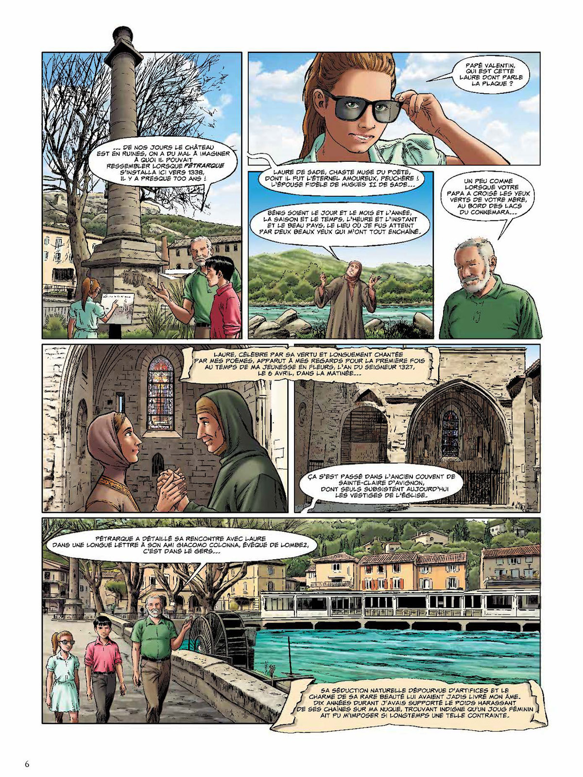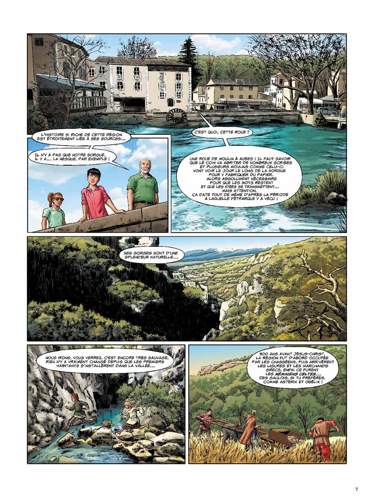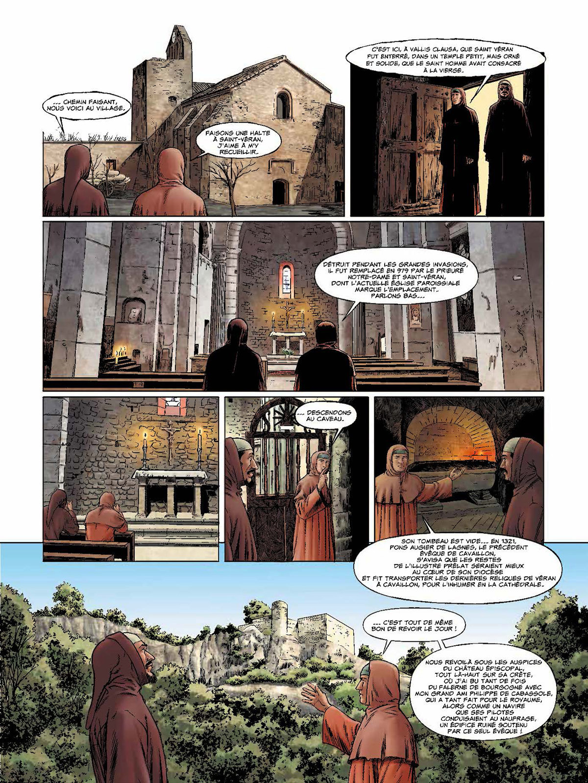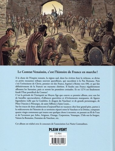 Le Comtat Venaissin, c'est l'histoire de France en marche ! A la chute de l'Empire romain, la région sud, dont les rivières font la richesse, se divise en petits royaumes tribaux souvent querelleurs, qui succèdent à la Pax Romana. Puis c'est l'avènement de Clovis, premier roi des Francs, baptisé à Reims vers 496, et qui fait définitivement de la Francie un royaume chrétien. Il faudra aux Francs régulièrement affronter les Sarrasins, puis ce seront les premières croisades. Et en 1274 est finalement fondé l'Etat pontifical du Comtat ! C'est la période de l'Antiquité au Moyen Age que couvre ce premier album, avec son lot de batailles spectaculaires, d'alliances guerrières et d'événements marquants, de figures légendaires (telle que la Coulobre, le dragon du Vaucluse) et de grands personnages, de Pline l'Ancien à Pétrarque, de saint Siffrein à Saint Louis... Sur les traces de deux adolescents d'aujourd'hui en vacances chez leur grand-père, partez à la redécouverte de l'histoire de ce territoire réparti entre le Vaucluse et la Drôme, comptant quatre-vingts communes qui toutes ont quelque chose à raconter, en passant au fil de l'eau et de l'aventure par Arles, Avignon, Orange, Carpentras, Venasque, L'Isle-sur-la-Sorgue, Vaison-la-Romaine, Fontaine-de-Vaucluse, etc. Cet album est réalisé avec le concours de l'association Les Nuits Comtadines.