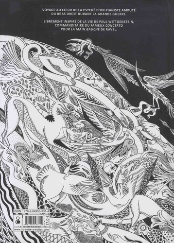 Inspiré par la biographie du paniste autrichien Paul Wittgenstein, Concerto pour main gauche nous transporte dans un univers onirique et poétique, au coeur de la psyché de ce personnage tourmenté, mélancolique et complexe, que seule la musique semble apaiser. Blessé lors de la première guerre mondiale, Paul Wittgenstein, frère du philosophe Ludwig Wittgenstein, fut amputé du bras droit mais poursuivit une carrière de concertiste malgré ce handicap. La fortune laissée par son père lui permit de commander des oeuvres pour la main gauche aux plus grands compositeurs de l'époque. Ainsi, c'est à sa demande que Maurice Ravel composa le célèbre Concerto pour la main gauche. Un destin extraordinaire porté par l'élégance et la poésie du dessin de Yann Damezin.