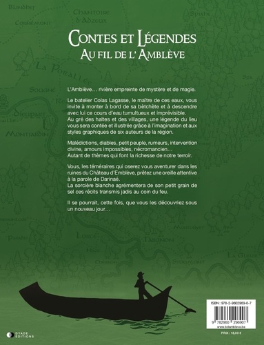 L'Amblève... rivière empreinte de mystère et de magie. Le batelier Colas Lagasse, le maître de ces eaux, vous invite à monter à bord de sa bètchète et à descendre avec lui ce cours d'eau tumultueux et imprévisible. Au gré des haltes et des villages, une légende du lieu vous sera contée et illustrée grâce à l'imagination et aux styles graphiques de six auteurs de la région. Malédictions, diables, petit peuple, rumeurs, intervention divine, amours impossibles, nécromancien... Autant de thèmes qui font la richesse de notre terroir. Vous, les téméraires qui oserez vous aventurer dans les ruines du Château d'Emblève, prêtez une oreille attentive à la parole de Darinaé. La sorcière blanche agrémentera de son petit grain de sel ces récits transmis jadis au coin du feu. Il se pourrait, cette fois, que vous les découvriez sous un nouveau jour...