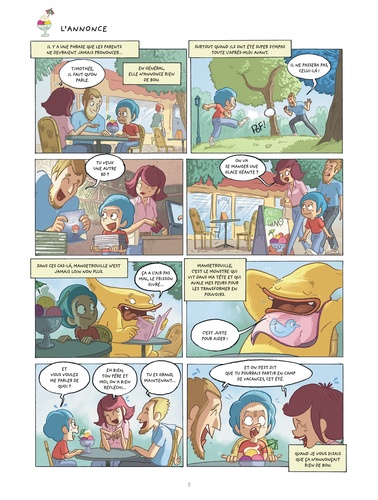 Pas facile pour Timothée de partir en colonie de vacances ! Pour la première fois, il va devoir laisser ses parents, partir dans un endroit inconnu et découvrir plein de nouveaux enfants. Mais si en plus viennent s'ajouter de vieilles connaissances turbulentes, un moniteur paramilitaire et des rumeurs de marins fantômes, c'est carrément l'angoisse ! Heureusement pour lui, Mangetrouille, son monstre glouton, s'est glissé dans ses bagages et attend avec impatience de pouvoir croquer toutes ces nouvelles peurs.