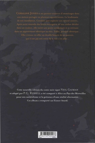 Nouvelle édition du conte noir, signé Neil Gaiman et adapté par P. C. Russell, qui a été comparé à Alice au Pays des Merveilles pour son surréalisme et la présence d'une réalité alternative. Cet album a remporté l' Eisner Award de la meilleure publication pour ados. Coraline Jones et ses parents viennent d'emménager dans une maison partagée en plusieurs appartements. Le lendemain de son installation, Coraline part explorer son nouvel univers. Après avoir entendu des bruits étranges et vu une ombre s'enfuir dans un couloir, elle ouvre une porte condamnée et se retrouve dans un appartement identique au sien. Enfin, presque identique... Elle y trouve en effet un double bizarre de ses parents, qui n'ont pas très envie de la voir s'en aller...