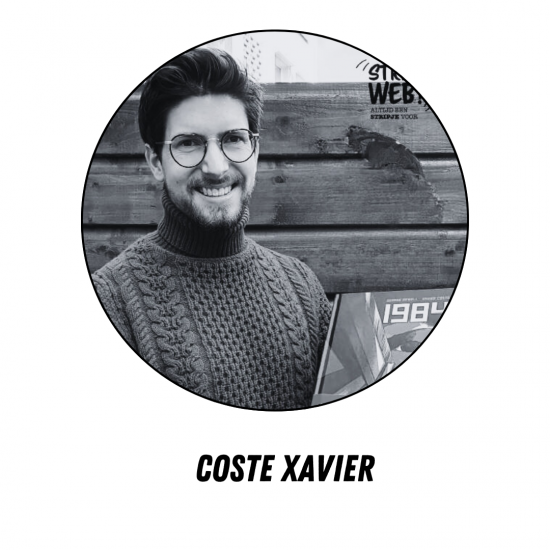 Xavier Coste is een Franse striptekenaar en illustrator, geboren in 1989 in Bayeux, Normandië. Hij begon zijn carrière als illustrator bij Ankama en maakte later naam met grafische romans die vaak biografisch of historisch van aard zijn. Zijn werk wordt gekenmerkt door een expressieve stijl en een doordacht kleurgebruik, waarmee hij complexe emoties en thema's overbrengt.