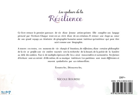Ce livre retrace le premier parcours de vie d'une femme artiste-peintre. Elle complète son langage pictural par l'écriture. Chaque texte est un récit d'une de ses créations. Il retrace une étape au coeur de son grand voyage, un itinéraire de géographie humaine autant intérieur qu'extérieur qui peut être suivi comme une biographie. A travers ces textes, ces moments de vie chargés d'émotions, de réflexions, d'une certaine philosophie de la vie se profile une vie entière tournée vers la recherche de la beauté, de la poésie de la lumière au-delà des ombres. face à de multiples épreuves elle les a ainsi transcendées et surmontées. Ses formes d'écriture sont un miroir d'elle-même, de sa musique intérieure. Les partitions sont toutes différentes et souvent symbolisées par un violoncelliste. Ecoutez-les... Découvrez-les.