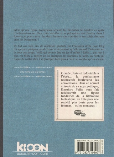 Mary Shelley face à la créature de Frankenstein... au féminin ! Alors qu'une figure mystérieuse arpente les bas-fonds de Londres en quête d'informations sur Elcy, cette dernière et sa préceptrice ont d'autres chats à fouetter, et pour cause : les deux femmes sont conviées à une soirée dansante chez les Dodgemont ! Ce bal aux faux airs de répétition générale est l'occasion rêvée pour Elcy d'esquisser quelques pas de danse et de prouver qu'elle connaît l'étiquette sur le bout des doigts. Voilà qui devrait être un jeu d'enfant ! Enfin... pas tout à fait, car Mary a négligé de lui enseigner les manières de table, un oubli qui risque de coûter cher à sa protégée, bien plus à l'aise au combat qu'en société. Grande, forte et redoutable à l'épée... la combattante ressuscitée bouleverse les conventions. Dans ce nouvel épisode de sa saga gothique, Kazuhiro Fujita nous fait redécouvrir une figure fondatrice de la littérature fantastique, en lutte pour une société plus juste pour les femmes... et les monstres !