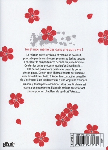 La relation entre Kirishima et Yoshino se poursuit, ponctuée par de nombreuses promesses écrites servant à encadrer le comportement débridé du jeune homme. Ce dernier désire présenter quelqu'un à sa fiancée... Elle ne sait pas encore qu'il va lui ouvrir la porte de son passé. De son côté, Shôma enquête sur l'homme avec lequel il s'est battu à Kobe. Son contact lui conseille de s'intéresser à un incident vieux d'une vingtaine d'années. Peu après, Azami passe à l'action : alors que Kirishima est retenu à un enterrement, il aborde Yoshino en se faisant passer pour un chauffeur du syndicat Tokusa...
