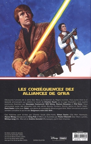 Retrouvez Dark Vador, Sabé et Ochi dans le comic book consacré au Seigneur Noir des Sith, tandis que la série Star Wars célèbre un double anniversaire : le centième épisode de la série depuis 2015 et le centième épisode écrit par Charles Soule ! L'occasion de retrouver Obi-Wan Kenobi, Poe Dameron mais aussi Kylo Ren. Charles Soule et ses collègues inscrivent les évènements de cette saga entre L'Empire Contre-Attaque et Le Retour du Jedi, autour d'une trilogie de récits sur l'Aube Ecarlate : après War of the Bounty Hunters et Crimson Reign, nous découvrirons le dernier volet Hidden Empire au cours de l'année 2023. Pour faire le pont entre Crimson Reign et Hidden Empire, les fans pourront poursuivre leur lecture avec l'épilogue de Crimson Reign puis, au printemps, avec le prologue d'Hidden Empire.