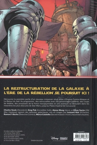 La Guerre des Chasseurs de Prime est terminée, pourtant ce n'était qu'un commencement ! Une nouvelle ère débute pour l'univers Star Wars, avec le retour de personnages appréciés, des rebondissements spectaculaires et une histoire qui vous conduira des profondeurs mafieuses de l'univers aux couloirs impériaux de Coruscant. CRIMSON REIGN prend la suite directe de WAR OF THE BOUNTY HUNTERS, achevé le mois dernier, et vous propose la série éponyme ainsi que tous les épisodes les plus récents des séries Star Wars : Star Wars, Darth Vader, Doctor Aphra ou encore Bounty Hunters ! Cette nouvelle série de quatre albums marque la deuxième phase d'une trilogie qui refaçonnera totalement l'histoire de la galaxie Star Wars !