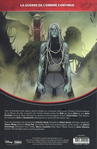 Qi'ra a envoyé deux assassins faire ce qu'ils font le mieux, dans ses efforts pour plonger la galaxie dans le chaos. Découvrez l'impitoyable Ochi de Bestoon et le mystérieux et invincible Deathstick. Ils ont chacun une cible et rien ne les empêchera de mener à bien leur mission. CRIMSON REIGN prend la suite directe de WAR OF THE BOUNTY HUNTERS et vous propose la série éponyme ainsi que tous les épisodes les plus récents des séries Star Wars : Star Wars, Darth Vader, Doctor Aphra ou encore Bounty Hunters ! Cette nouvelle série de quatre albums marque la deuxième phase d'une trilogie qui refaçonnera totalement l'histoire de la galaxie Star Wars !
