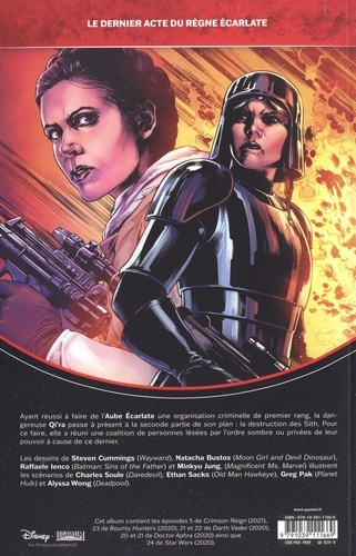 Conclusion de la mini-série Crimson Reign qui dévoile les plans de Lady Qi'ra et le projet de l'Aube Ecarlate pour mettre à mal l'Empire Galactique. Mais l'héroïne du film Solo : A Star Wars Story commet une erreur qui pourrait s'avérer fatale : sous-estimer Palpatine... Suite de la prépublication des séries Star Wars dans l'ère éditoriale qui fait suite à War of the Bounty Hunters. Après War of the Bounty Hunters et Crimson Reign, la trilogie consacrée à Qi'ra trouvera sa conclusion avec Hidden Empire.