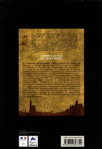 A l'euphorie de novembre 1918 succède peu a peu un malaise : l'image que se sont faite l'une de l'autre la France et l'Alsace ne correspond pas tout à fait à la réalité, ce qui engendre des problèmes de toutes sortes. Ceux-ci suscitent l'émergence de divers partis a tendance "autonomiste", souvent plutôt régionalistes. En 1939, la déclaration de guerre s'accompagne d'une évacuation massive vers le Limousin et le Périgord. Occupée en 1940, annexée a l'encontre du droit international, l'Alsace subit le poids de la dictature hitlerienne : endoctrinement, répression, incorporation de force... Les violents combats de la libération rendent à la France une région ravagée. Malgré les drames liés à l'épuration, a la situation des malgré-nous, a l'attente des disparus, l'Alsace se reconstruit et connaît un nouvel essor, tout en développant son rôle dans le dialogue européen.