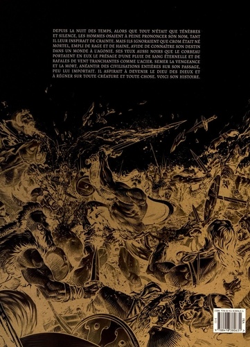 Plongez dans la furie cimmérienne et découvrez comment Crom de simple guerrier mortel est devenu le dieu impitoyable qu'invoque régulièrement Conan le barbare ! Quittant femme et enfants Crom décide de défier les hommes et les dieux et se lance à corps perdu dans la quête des cinq reliques. A la force du poignet et de l'épée il devient surpuissant, invincible. Il met au pas les hommes, les armées et les rois. Mais son but ultime c'est de s'attaquer aux Grands Anciens, de se faire une place au soleil ou plutôt au sommet de la montagne et au coeur du volcan.