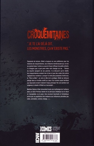 Les monstres, ça n'existe pas que dans la tête des enfants... Passionné de lecture, Elliott a toujours eu une préférence pour les histoires de Croquemitaines, ces créatures monstrueuses qui, la nuit, se cachent dans l'ombre ou sous le lit pour effrayer les petits enfants. Il n'imagine pas à quel point elles vont changer sa vie... Témoin du meurtre sanglant de ses parents, il va découvrir qu'en réalité, les Croquemitaines existent bel et bien et que des codes très précis régissent leur existence. Lorsque l'un des plus puissants d'entre eux, le " Père-la-mort ", se met en tête de le protéger, Elliott va se retrouver plongé dans un terrible conflit au coeur d'un univers aussi terrifiant que fascinant et dont il devient l'enjeu principal. Par une sombre nuit orageuse, le destin d'Elliott va s'accomplir... Mathieu Salvia et Djet réinventent toute une mythologie de l'enfance dans un récit d'horreur tendre et un parcours initiatique sur le deuil et l'acceptation de la peur. Une aventure touchante et fantastique servie par un graphisme très moderne aux influences plurielles (jeu vidéo, animation, comics, manga). En bonus : les dessous de la création de l'oeuvre, des informations additionnelles sur le background et la mythologie des Croquemitaines, des recherches graphiques et une galerie d'hommages exclusifs par des grands auteurs du 9e art !
