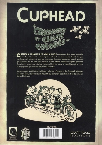 Cupmead, Mugman et Mme Calice reviennent dans cette nouvelle collection de cabrioles chaotiques ! La bande se fourre dans des pétrins pas possibles mais hilarants à base de commerce de crème glacée, de jeux de société qui prennent vie et bien plus encore ! Cette bande dessinée originale propose d'excitantes aventures inédites, toujours illustrées dans le magnifique style rétro et magique du jeu multi récompensé Cuphead ! Ne passez pas à café de la troisième collection d'aventures de Cuphead, Mugmen et Mme Calice, toujours sous la houlette du scénariste Zack Keller et du dessinateur Shawn Dickinson !