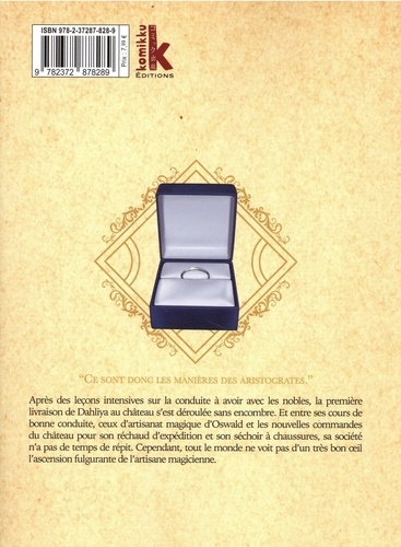 Dahliya va vous ensorceler ! Après des leçons intensives sur la conduite à avoir avec les nobles, la première livraison de Dahliya au château s'est déroulée sans encombre. Et entre ses cours de bonne conduite, ceux d'artisanat magique d'Oswald et les nouvelles commandes du château pour son réchaud d'expédition et son séchoir à chaussures, sa société n'a pas de temps de répit. Cependant, tout le monde ne voit pas d'un très bon oeil l'ascension fulgurante de l'artisane magicienne.