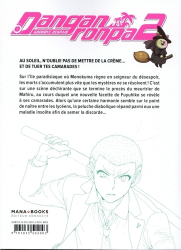 L'adaptation du jeu culte de Spike Chunsoft enfin en France ! Sur l'île paradisiaque où Monokuma règne en seigneur du désespoir, les morts s'accumulent plus vite que les mystères ne se résolvent ! C'est sur une scène déchirante que se termine le procès du meurtrier de Mahiru, au cours duquel une nouvelle facette de Fuyuhiko se révèle à ses camarades. Alors qu'une certaine harmonie semble sur le point de naître entre les lycéens, la peluche diabolique répand parmi eux une maladie insolite afin de semer la discorde...