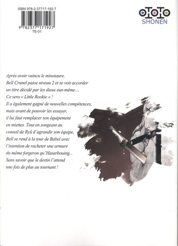 Après avoir vaincu le minotaure, Bell Cranel passe niveau 2 et se voit accorder un titre décidé par les dieux eux-même... Ce sera "Little Rookie" ! Il a également gagné de nouvelles compétences, mais avant de pouvoir les essayer, il lui faut remplacer son équipement en miettes. Tout en songeant au conseil de Ryû d'agrandir son équipe, Bell se rend à la tour de Babel avec l'intention de racheter une armure du même forgeron qu'Hasarbouing... Sans savoir que le destin l'attend une fois de plus au tournant !