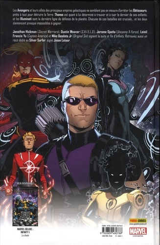 Les Avengers et leurs alliés des principaux empires galactiques ne semblent pas en mesure d'arrêter les Bâtisseurs, prêts à tout pour détruire la Terre. Thanos est quant à lui déterminé à trouver et à tuer le dernier de ses enfants, et les Illuminati sont la dernière ligne de défense de la planète. Chacune de ces batailles est cruciale... et les deux s'annoncent presque impossibles à gagner.