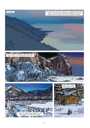 Peut-on se détacher complètement du monde des hommes ? Quitter la ville et son quotidien pour aller vivre au bout du monde, tel est le défi que s'est donné Sylvain Tesson. De février à juillet 2010, l'écrivain voyageur a choisi de vivre la fin de l'hiver puis le printemps sibérien. Habitant seul une cabane au bord du Lac Baïkal, il s'est plié au silence en choisissant de vivre lentement, environné de livres, de vodka et de souvenirs. Sans déranger la nature mais en s'interrogeant avec elle dans une introspection au long cours, Tesson a marché, exploré, pêché, il a fait du patin à glace sur le lac et accepté l'hospitalité de ses rares voisins. Cette ascèse de six mois loin de la France, l'auteur en a fait le récit dans son célèbre livre paru chez Gallimard en 2011. Par un dessin subtil et généreux tout en couleur, Virgile Dureuil en propose pour la première fois une adaptation en bande dessinée...