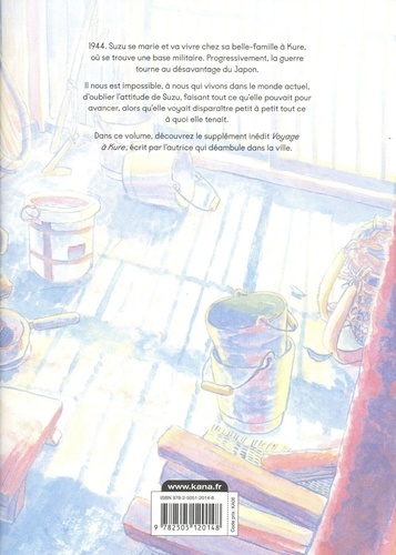 1944. Suzu se marie et va vivre chez sa belle-famille à Kure, où se trouve une base militaire. Progressivement, la guerre tourne au désavantage du Japon. Il nous est impossible, à nous qui vivons dans le monde actuel, d'oublier l'attitude de Suzu, faisant tout ce qu'elle pouvait pour avancer, alors qu'elle voyait disparaitre petit à petit tout ce à quoi elle tenait. Dans ce volume, découvrez le supplément inédit Voyage à Kure, écrit par fautrice qui déambule dans la ville.