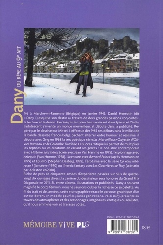 Né à Marche-en-Famenne (Belgique) en janvier 1943, Daniel Henrotin (dit "Dany") esquisse son destin au travers de deux grandes passions conjointes : la lecture et le dessin. Fasciné par les planches paraissant dans Spirou et Tintin, l'adolescent s'invente un monde merveilleux et débute dans la publicité. Repéré par le dessinateur Mitteï, il effectue dès 1965 ses débuts dans le milieu de la bande dessinée franco-belge. Sachant alterner entre humour et réalisme, il débute avec Greg en 1968 la très poétique série La Merveilleuse Odyssée d'Olivier Rameau et de Colombe Tiredaile. Le succès critique lui permet de multiplier les reprises ou les créations en variant les genres : le one-shot contemporain avec Histoire sans héros (créé avec Jean Van Hamme en 1975), l'espionnage avec Arlequin (Van Hamme, 1978), l'aventure avec Bernard Prince (après Hermann en 1979) et Equator (Stephen Desberg, 1992), l'érotisme avec la série Ca vous intéresse ? (lancée en 1990) ou l'heroic fantasy avec Les Guerrières de Troy (scénario par Arleston en 2010). Riche de près de cinquante années d'expérience passées sur plus de quatre-vingt dix ouvrages divers, la carrière du dessinateur sera honorée du Grand Prix Diagonale en 2011. Si, entre albums, illustrations et publicités, Dany a souvent magnifié le corps féminin, nous ne saurions oublier la richesse de sa palette. Au fil du trait et des années, cette monographie retrace le parcours graphique d'un auteur devenu un modèle pour les jeunes générations. Voici Dany, présenté au travers des atmosphères et des personnages, imaginaires, érotiques ou réalistes, qu'il nous emmène voir et lire à ses cotés...