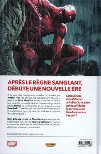 A la suite de Devil's Reign et de l'attaque massive du Caïd sur les super-héros, Hell's Kitchen est dans un triste état. Quant à Matt Murdock, il doit renouer avec la liberté et avec Elektra, qui avait repris le flambeau de Daredevil en son absence. Les deux héros ignorent que leurs plus grands défis restent à venir ! Nouveau départ pour Daredevil, dans la continuité directe des précédents albums et des 100% MARVEL : DEVIL'S REIGN qui ont fait trembler l'univers urbain de Marvel fin 2022. Chip Zdarsky est toujours aux commandes et poursuit les trames qu'il a commencé à tisser, mais les nouveaux lecteurs auront tous les éléments pour se jeter dans l'aventure. De quoi patienter en attendant l'arrivée de Daredevil : Born Again sur Disney+ !