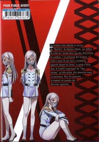 Découvrez l'adaptation en manga dessinée par Kentaro Yabuki de l'anime à succès disponible sur Crunchyroll ! Dans cette dystopie, la surexploitation des ressources naturelles a fini par anéantir l'environnement ! Dans un futur lointain, l'humanité s'est retranchée dans des villes fortifiées mobiles, les Plantations. Elles sont régulièrement menacées par les Hurleurs. De jeunes pilotes affrontent ces ennemis à bord des Franxx, des robots géants. Hiro ne s'accorde pas avec sa partenaire et échoue à devenir pilote, jusqu'à l'arrivée de Zero Two, une étrange jeune fille avec laquelle il est capable de piloter.