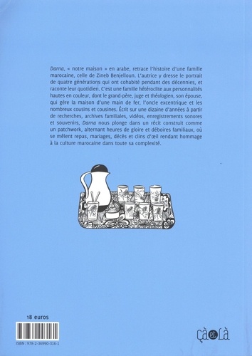 Darna, "notre maison" en arabe, retrace l'histoire d'une famille marocaine, celle de l'autrice Zineb Benjelloun. Elle y dresse le portrait de quatre générations qui ont cohabité pendant des décennies et raconte leur quotidien. Le récit décrit en filigrane l'histoire du Maroc depuis le protectorat et la première résidence familiale à Casablanca dans le quartier des Habous, puis dans le Moyen Atlas, jusqu'à leur arrivée à Darna où Zineb habitera quelques années après ses études en France et son premier travail dans une chaîne de télé locale ... C'est une famille hétéroclite aux personnalités hautes en couleurs, il y le grand-père, juge de paix et théologien, sa femme qui gère la maison d'une main de fer, l'oncle excentrique et les nombreux cousins et cousines. Zineb Benjelloun appartient à une génération qui interroge l'influence de la France et le système local, mais aussi la façon dont l'histoire familiale et l'histoire nationale façonnent les individus et la société... Développé à partir de nombreuses recherches et archives familiales, de vidéos, d'enregistrements sonores, souvenirs et témoignages recueillis auprès des membres de sa famille, Darna nous plonge dans un récit émouvant, construit comme un patchwork visuel écrit sur une dizaine d'années, alternant heures de gloire et déboires, où se mêlent repas, mariages, décès et clins d'oeil à la culture marocaine.