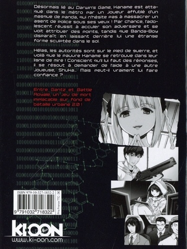 20 ans, 20 tomes à 3 ? pour célébrer les séries qui incarnent la diversité du catalogue Ki-oon ! Entre Gantz et Battle Royale , un thriller décapant sur fond de bataille urbaine 2. 0 ! "Le joueur Kyoda demande votre aide ! Rejoignez vous aussi le Darwin's Game et volez à son secours ! ' La vie de Sudo Kaname bascule le jour où ces quelques mots a priori inoffensifs s'affichent sur son portable. Il a le malheur d'accepter l'invitation. Aussitôt mordu au cou par un serpent virtuel surgi de l'écran, il est désormais l'esclave d'un jeu impitoyable, le Darwin's Game, véritable arène urbaine dans laquelle des participants interconnectés via un réseau social s'affrontent dans des duels à mort. Très vite, le lycéen doit se rendre à l'évidence : même s'il essaie de se soustraire au jeu, ses adversaires, attirés par l'appât du gain et le frisson du combat, sont prêts à tout pour le retrouver...
