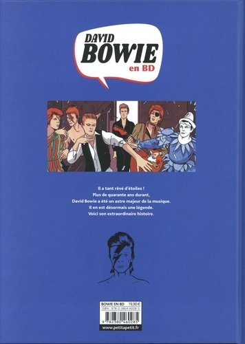 De David Jones à David Bowie et de Space Oddity à Black Star, découvrez le destin d'un artiste aux mille visages en Docu-BD. C'est un des artistes les plus marquants et les plus créatifs du XXe siècle. Il explora mille styles et traversa les époques avec splendeur. Sa perte laisse un vide immense... pour le combler, découvrez son destin incroyable en Docu-BD.