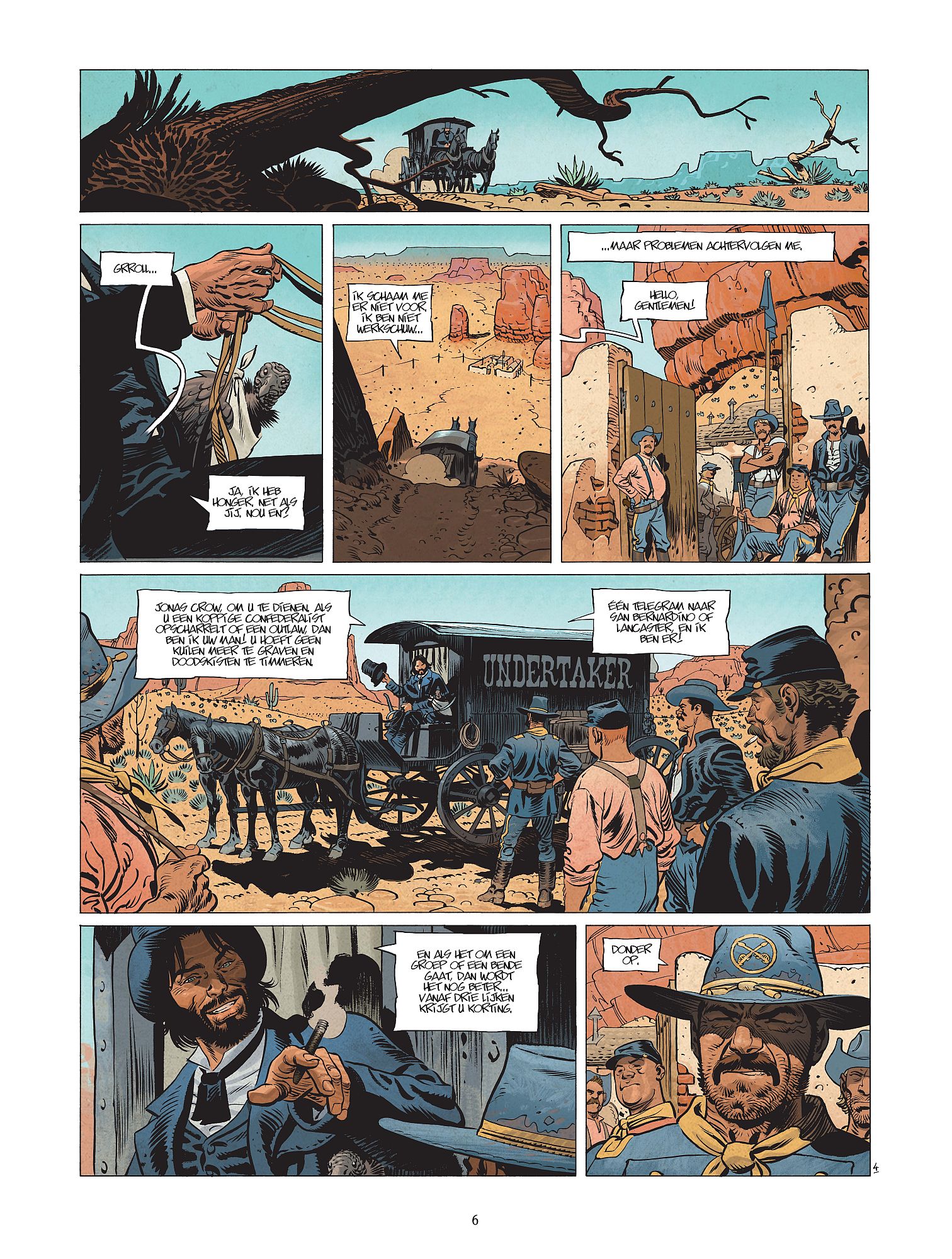 Tekenaar Ralph Meyer kennen we reeds van 'De Mangoest' (XIII Mystery) en het steengoede 'Asgard'. Het scenario is hier ook telkens van Xavier Dorison. Nu dus 'Undertaker', een begrafenisondernemer dan nog wel! Een man gaan begraven die nog niet dood is... De interesse is gewekt... en niet meer weggegaan! Joe Cusco eet zijn goud op en er zijn er heel wat die dat te weten komen. Samen met de charmante Rose Prairie en de Chinese Lin trekt Jonas Crow op avontuur. Over Jonas weten we echter nog lang niet alles. Hij kan wel opvallend goed schieten en we stellen ons (vele) vragen over zijn verleden. Voorlopig doen we het met: Lance Strikland "Butcher of Skullhill" 36 Murders. En wat een vreemde reisgezel: Jed, de gier. Wie we niet licht zullen vergeten is het personage Jeronimus Quint, een kwakzalver waar ik zeker geen transplantatie van wens. Een grotere manipulator zijn we nog niet tegengekomen.