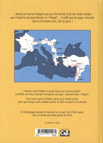 L'histoire vraie d'Hakim, un jeune Syrien qui a dû fuir son pays pour devenir "réfugié" . Un témoignage puissant, touchant, sur ce que c'est d'être humain dans un monde qui oublie parfois de l'être. L'histoire vraie d'un homme qui a dû tout quitter : sa famille, ses amis, sa propre entreprise... parce que la guerre éclatait, parce qu'on l'avait torturé, parce que le pays voisin semblait pouvoir lui offrir un avenir et la sécurité. Un récit du réel, entre espoir et violence, qui raconte comment la guerre vous force à abandonner votre terre, ceux que vous aimez et fait de vous un réfugié. Une série lauréate du Prix Franceinfo de la Bande Dessinée d'Actualité et de Reportage.