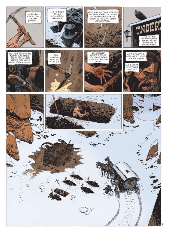 Een diligence wordt brutaal overvallen door de Apaches van Salvaje. Ze tonen geen genade en slachten de blanken af die zich op hun grondgebied hebben gewaagd. Een van de aanvallers is echter een witte Indiaan… De jongeman heette vroeger Caleb en werd gekidnapt en gefolterd door de Indianen, die hem opleidden tot een van hun beste krijgers. Op die manier straften zij zijn moeder, Joséphine Barclay, eigenares van de gelijknamige onderneming, die ervoor had gepleit de spoorlijn door het grondgebied van de Apachen te laten lopen. Wanneer ze verneemt dat de witte Indiaan gedood zou zijn bij de overval van de koets, wil Mevrouw Barclay graag het lichaam van haar zoon bergen. Ze draagt sheriff Sid Beauchamp op de geknipte man te vinden voor deze missie. De keuze is snel gemaakt… als je op zoek moet naar een lijk, roep je de hulp in van Jonas Crow! Spannende ontknoping van de klopjacht op de Reus van Sutter Camp. Striptekenaar Ralph Meyer kennen we onder meer van volgende stripreeksen of delen hiervan waaraan hij aan meewerkte ASgard Black page hard tegen hard IAN XIII Mysterie Stripscenarist Dorison Xavier kennen we van volgende stripreeksen of delen hiervan waaraan hij meerwerkte • Aristophania • Assassins Greed • Beestenburcht • Collectie Explora • De Kleine Prins • De Wachters • heiligdom • Het syndroom van Abel • Het derde testament • Long John Silver • Krijgsheren • Prophet • Red Skin • Thorgal • Ulysses • WEST • XIII Mysterie • Zo maak je fortuin in juni 1940 • Zwanenzang