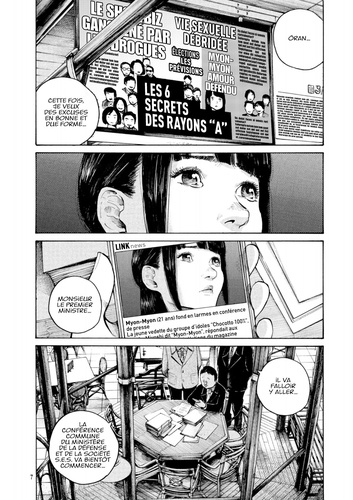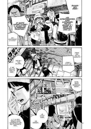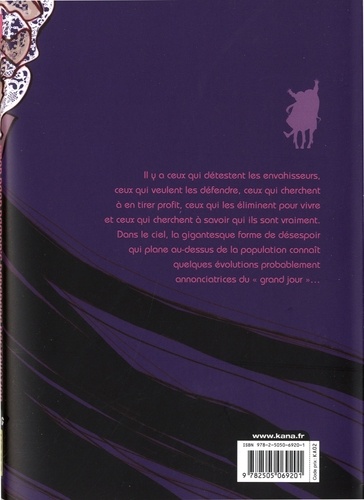 Il y a ceux qui détestent les envahisseurs, ceux qui veulent les défendre, ceux qui cherchent à en tirer profit, ceux qui les éliminent pour vivre et ceux qui cherchent à savoir qui ils sont vraiment. Dans le ciel, la gigantesque forme de désespoir qui plane au-dessus de la population connaît quelques évolutions probablement annonciatrices du "grand jour"...