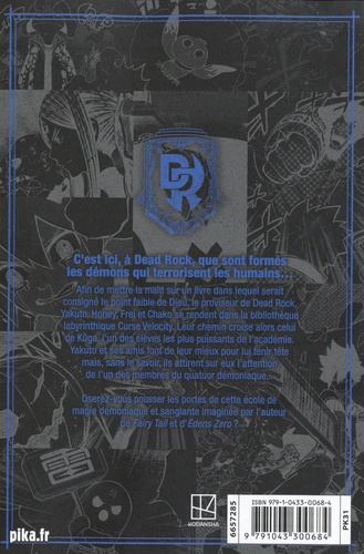 Afin de mettre la main sur un livre dans lequel serait consigné le point faible de Dieu, le proviseur de Dead Rock, Yakuto, Honey, Frei et Chako se rendent dans la bibliothèque labyrinthique Curse Velocity. Leur chemin croise alors celui de Kûga, l'un des élèves les plus puissants de l'académie. Yakuto et ses amis font de leur mieux pour lui tenir tête mais, sans le savoir, ils attirent sur eux l'attention de l'un des membres du quatuor démoniaque... Oserez-vous pousser les portes de cette école de magie démoniaque et sanglante imaginée par l'auteur de Fairy Tail et d'Edens Zero ?