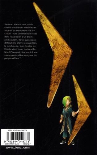 Sanso et Hineto sont partis cueillir des herbes médicinales au pied du Mont Noir afin de sauver leurs camarades blessés dans l'explosion d'un black anima géant. Ils trouvent sans difficulté la plante en question, la lumilunaire, mais le père de Hineto vient jouer les trouble-fête ! Pourquoi Hineto a-t-il une valeur particulière aux yeux du peuple Allium ?