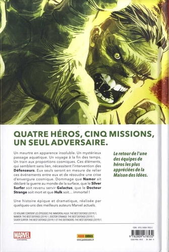 Namor, le Silver Surfer, le Docteur Strange et l'immortel Hulk agissent séparément puis de concert dans cinq récits imaginés par les scénaristes et dessinateurs les plus en vue de la Maison des Idées. Des aberrations apparaissent à travers l'espace-temps : un meurtre impossible, une porte sous l'eau, un vagabond à la fin des temps, une farandole de planètes. Quatre événements qui ne sont pas sans liens. Il va falloir toute l'ingéniosité des quatre Défenseurs des origines pour sauver la réalité.