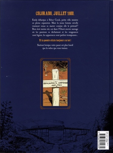 Dans le train qui la mène à Silver Creek, petite ville perdue aux confins du Colorado. Emily se souvient du destin tout tracé qu’elle a fui. Elle ne voulait pas devenir comme sa mère, et vendre ses charmes à des hommes de passage dans le quartier chaud de La Nouvelle-Orléans. Mais lorsque celui qui devait vous épouser ne se présente pas à la gare et que vous êtes une jolie jeune femme seule et sans le sou dans une ville minière des Rocheuses. Que vous reste-il comme option ? Le patron du saloon aura bien une petite idée en tête ... A moins qu’Emily ne coure après autre chose et que la venue prochaine du gouverneur favori aux élections sénatoriales ne soit pas qu’une simple coïncidence. Car, en cette année 1900 dans l’Ouest encore sauvage, les règlements de comptes sont légion, les fuites et les cavalcades infinies. Sans compter les détectives de I ’agence Pinkerton qui vous traquent sans relâche pour pouvoir toucher la prime mise sur votre tête. Survivre dans les montagnes, les déserts ou traverser les territoires indiens semble alors peu de chose, face aux autres dangers qui guettent.
