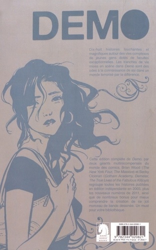 Par le biais d'histoires courtes indépendantes, Demo raconte les chroniques de jeunes gens aux capacités extraordinaires qui vont devoir, chacun à leur manière, affronter l'amour, la joie, la perte et se frayer un chemin dans un monde où - à l'instar du nôtre - il ne fait pas bon être différent... Une photographie de la jeunesse actuelle où les superpouvoirs forment le prisme révélateur des préoccupations adolescentes. Immense succès critique indépendant puis chez DC-Vertigo, ce chef-d'oeuvre signé Brian Wood (The New York Four, The Massive) et Becky Cloonan (The True Lives of the Fabulous Killjoys, Punisher), paraît aujourd'hui en France dans une édition définitive collectant l'intégralité de la série : soit 18 histoires courtes aux multiples genres narratifs et graphiques. Une véritable bible du comics indé !