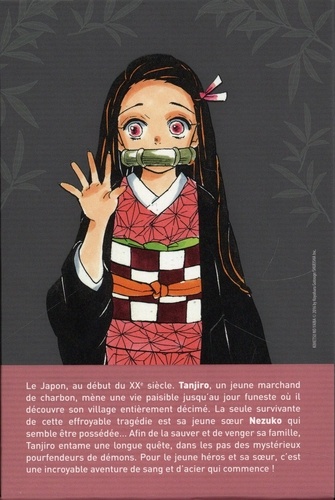 Le Japon, au début du XXe siècle. Tanjiro, un jeune marchand de charbon, mène une vie paisible jusqu'au jour funeste où il découvre son village entièrement décimé. La seule survivante de cette effroyable tragédie est sa jeune soeur Nezuko qui semble être possédée... Afin de sauver sa soeur et venger sa famille, Tanjiro entame alors une longue quête, dans les pas des mystérieux pourfendeurs de démons. Pour le jeune héros et sa soeur, c'est une longue aventure de sang et d'acier qui commence ! Noël approche... Une envie de connaître ce phénomène dont tout le monde parle ? Une idée cadeau ? Voici le présent idéal ! Les 3 tomes de la série phénomène et 3 lithos dans un coffret conçu spécialement pour les fêtes de fin d'année. Ces jolies box orneront à merveille les étagères des librairies et attireront l'oeil des clients. Nul n'échappe aux pourfendeurs de démons !