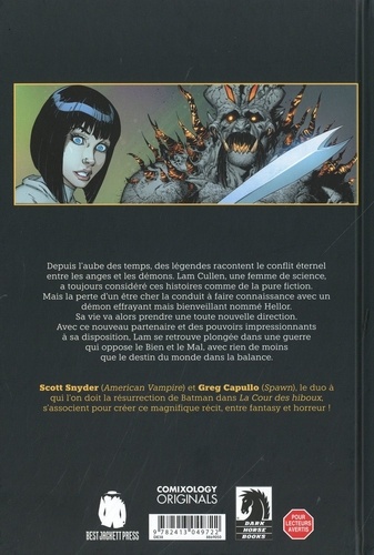 APRES LEUR RUN ULTRA PLEBISCITE SUR BATMAN LA COUR DES HIBOUX, SCOTT SNYDER & GREG CAPULLO S'ASSOCIENT A NOUVEAU POUR UNE CREATION ENTIEREMENT INEDITE ! Depuis l'aube des temps, des légendes racontent le conflit éternel entre les anges et les démons. Lam Cullen, femme de science, n'y a jamais cru. Mais la perte d'un proche qui lui était très cher la conduit à découvrir un démon effrayant mais bienveillant nommé Hellor. Sa vie va alors prendre une toute nouvelle direction.