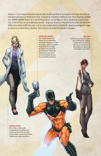 Depuis que le règne de terreur du Syndicat du Crime a été aboli, Barry Allen est plus déterminé que jamais b arrêter tous les criminels évadés d'lron Heights. Mais il semble à l'homme le plus rapide du monde, que le temps lui glisse entre les doigts. Ce temps qu'il a définitivement perdu, des années plus tard, et qu'il tente de rattraper en remontant le cours des évènements. Mais cette quête et les rencontres qu'il fera ne seront pas sans conséquences... FLASH ou la vitesse incarnée. Robert Venditti (Green Lantern), Van Jensen (Green Lantern Corps) et Brett Booth (Titans) entraînent le super-héros le plus rapide de l'univers DC dans une nouvelle quête où présent et futur se percutent. La collection Renaissance propose aux lecteurs l'occasion historique de découvrir les toutes nouvelles aventures des icônes de l'univers DC.