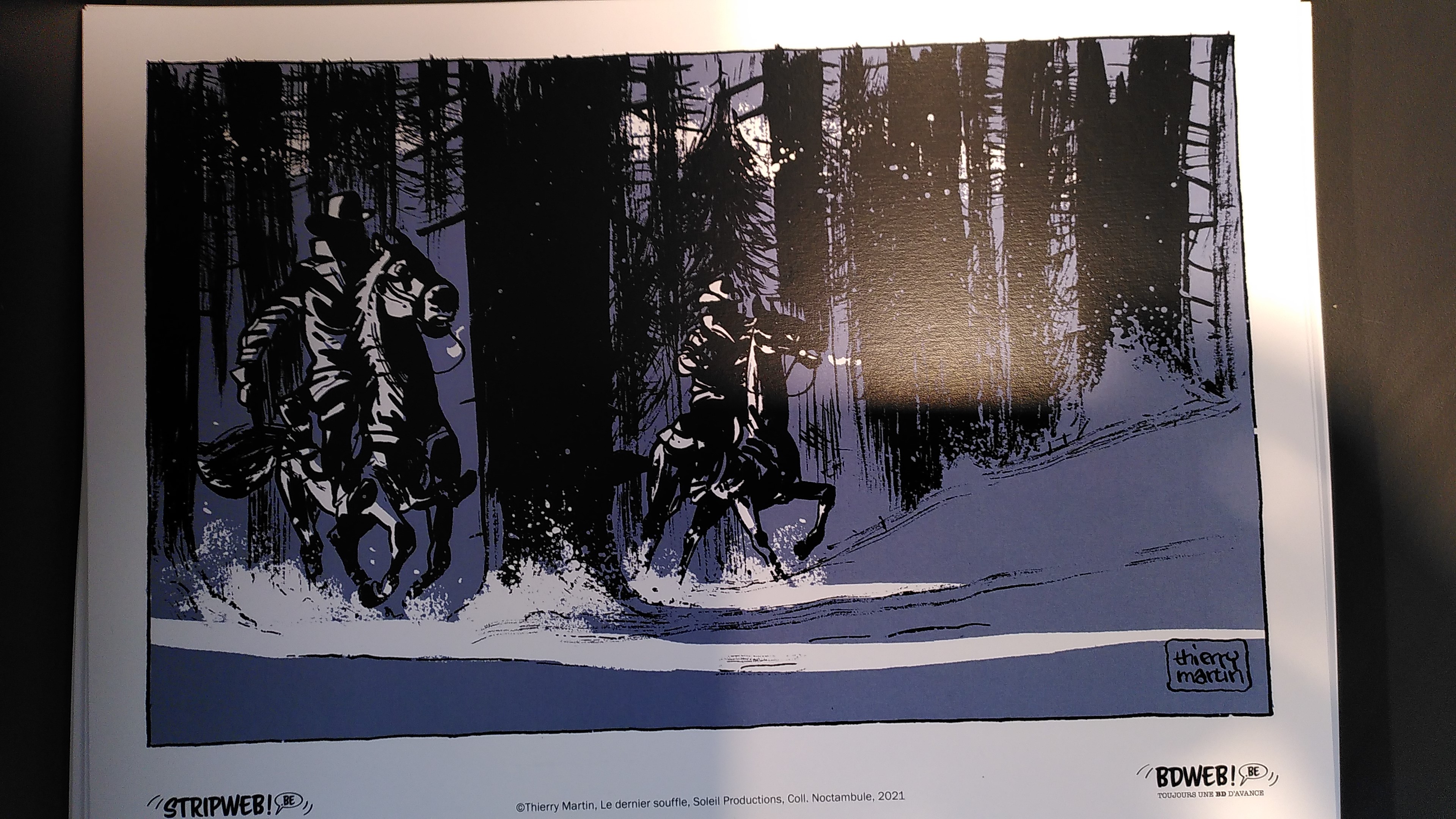 Signé Thierry Martin, Dernier Souffle propose de suivre la traque obsédante et silencieuse, menée par un homme porté par le souffle de la vengeance. Une traque immuable aux multiples rebondissements dont les plus terribles prédateurs ne seront peut-être pas ceux qu'on imagine... Un western haletant né sur Instagram, un défi scénaristique et graphique, une improvisation maîtrisée, au jour le jour.